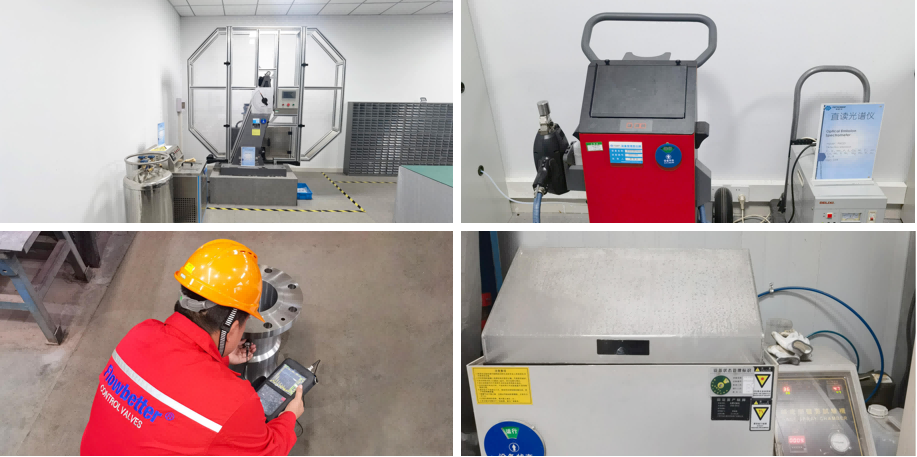 The company is equipped with specialized machinery for key processes such as material performance, machining, assembly, strength, andalirtightness. In teims of pressureand fow detetion, the company possesses a 10 MPa (1450 Ps) hish-presure gas fow performance testing device, enabling dynamic performance testing of valves by simulating on-site condtions, and providing parameter demonstrations and training services for customers.