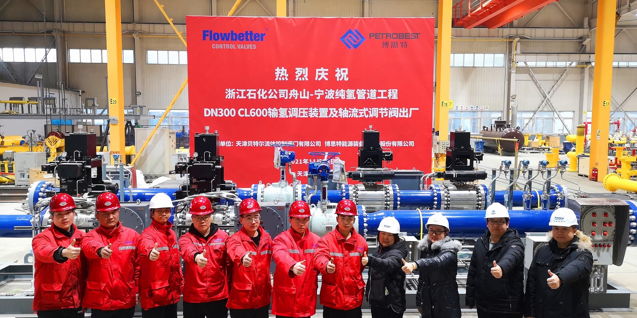 2021年12月24日,由博思特能源装备(天津)股份有限公司提供调压装置、天津贝特尔流体控制阀门有限公司提供轴流式调节阀、北京东方华智石油工程有限公司提供工程设计服务的浙江石化4000万吨/年炼化一体化项目舟山-宁波石化基地互联互通纯氢管道工程DN300 CL600调压装置及轴流式调节阀顺利出厂。此项目的顺利完成,标志着博思特及其子公司在氢气输送技术领域又迈出了坚实的一步,对公司在氢气和混氢管线输送领域的业务延伸具有十分重要的意义。 -